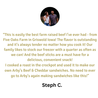 At Five Oaks Farm, we are committed to one thing: providing premium Wagyu beef that you can trust. We know that when people seek out Wagyu, they are looking for the best—and we take that expectation seriously. Our love for Wagyu began with its exceptional marbling, tenderness, and unmatched flavor. But as we explored the market, we realized that not all Wagyu is created equal. That's why we’ve committed ourselves to raising our own cattle with the highest standards, ensuring our customers receive the superior quality they expect, whether it’s our crossbred Wagyu (50% Wagyu) or our Fullblood Wagyu (100% Wagyu).