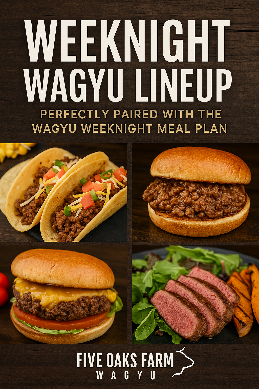 The Weeknight Wagyu Lineup is your curated bundle of Five Oaks Farm Wagyu beef, perfectly paired with our seasonal Wagyu Weeknight Meal Plan. From quick skillet meals to Friday night fajitas, this lineup includes premium cuts that simplify your week and elevate your plate.